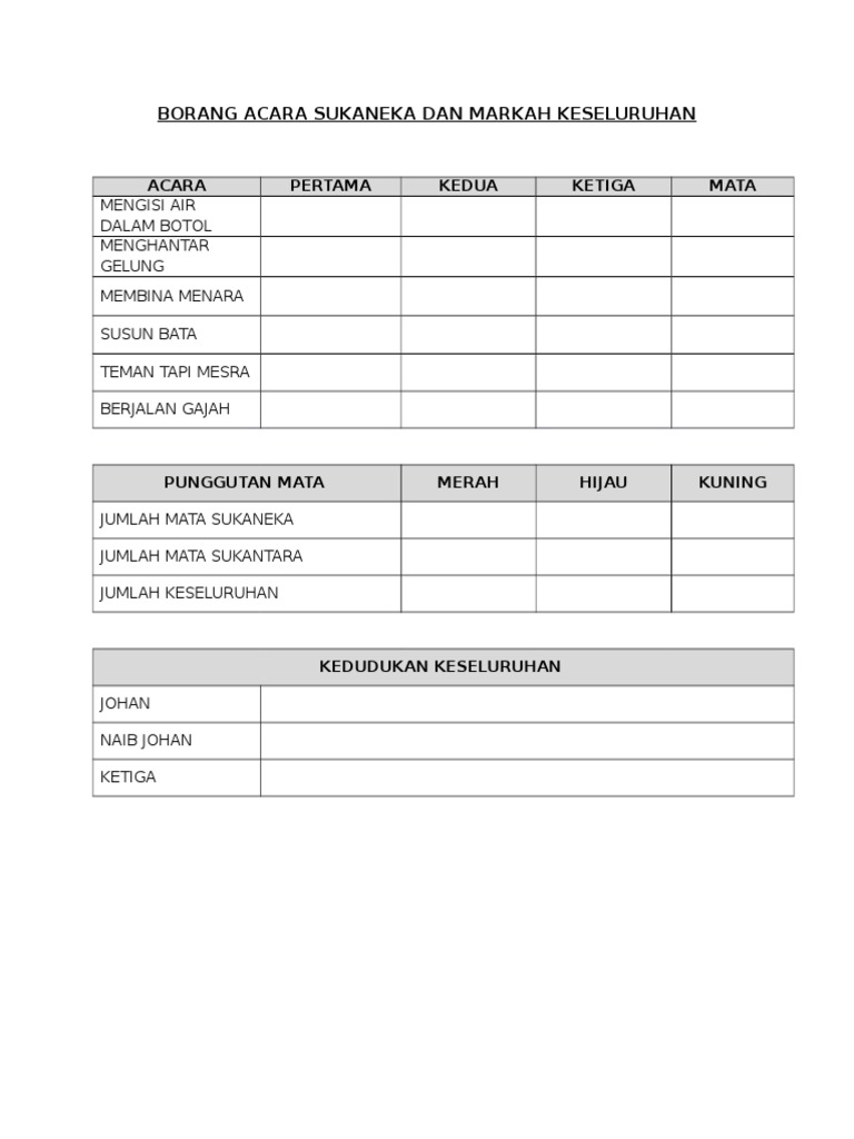 And, sukaneka, bola beracun, purpose sports, terompah gergasi, sports activities.