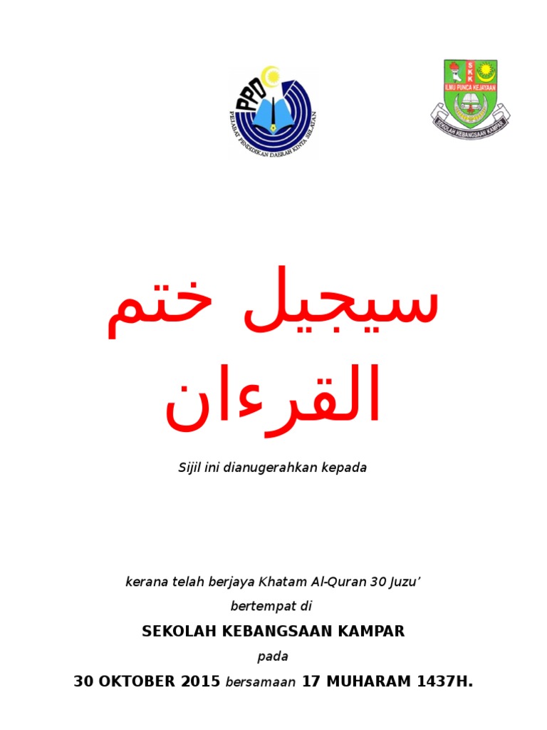 Sijil Khatam Al Quran / 1 : Harap dapat diagihkan kepada murid murid sebelum cuti sekolah bermula.. Ada sar kafa terpaksa mengupah untuk menulis sijil tersebut kerana tiada kemahiran untuk menulis, tidak semua guru sar kafa mahir dalam tulisan khat ni. Sijil yang diberi adalah sijil kosong. Sijil khatam al quran ahmed baihaqi s website. Contoh sijil khatam quraan lencana sekolah. For more information and source, see on this link :